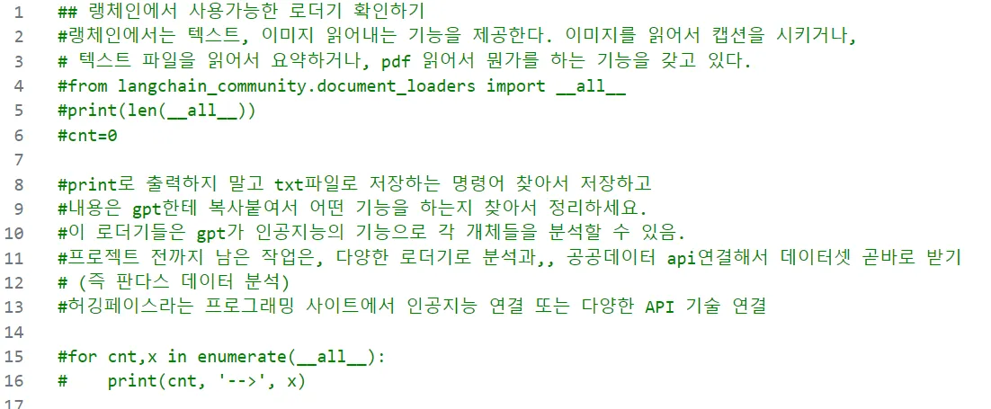 웹사이트 크롤링은 직접 해야 한다. 일단 pdf 요약기능도 텍스트만 있는 것은 좋은데 이미지가 있거나 표가 있으면 안된다. 그건 유료버전이다. 여기에서 제공하는 기능에서는 도큐먼트 로더기가 있다. 오픈 AI에 맞춰서 문서를 읽어서 문장을 단어화시켜주는 객체화를 시켜주는 로더기이다. 현재 상황에서는 이게 가장 좋다.